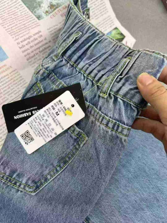 #Jeans wholesale 弯刀牛仔裤女士秋冬半松紧高腰长阔腿裤 宽松镰刀裤,单款...