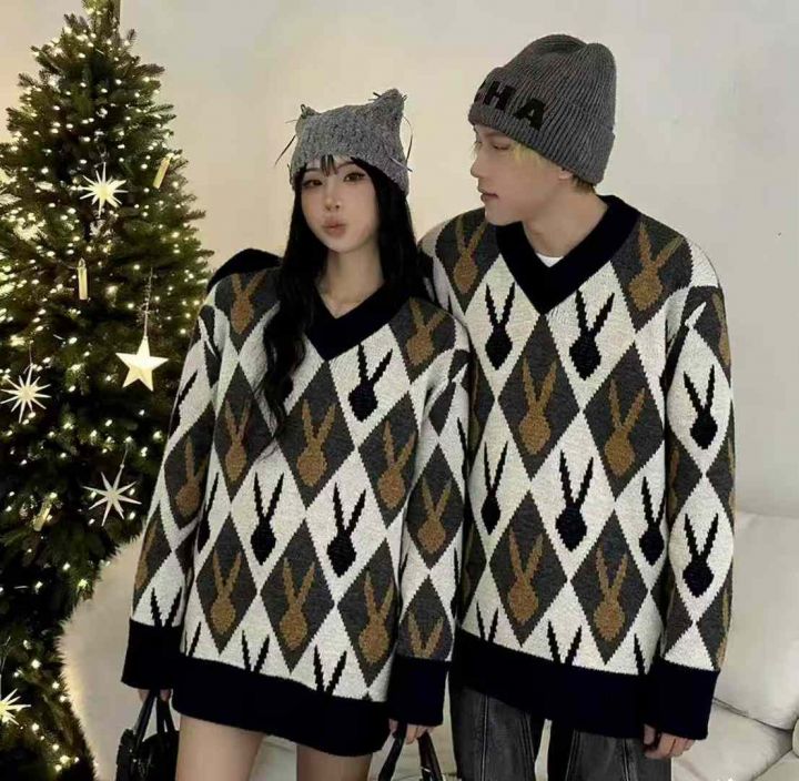 捡漏款,秋冬新款男女同款宽松百搭卡通北极绒V领套头毛衣,独立包装带吊牌,码数M--2XL码,96件,全清8.9元超低价秒杀!