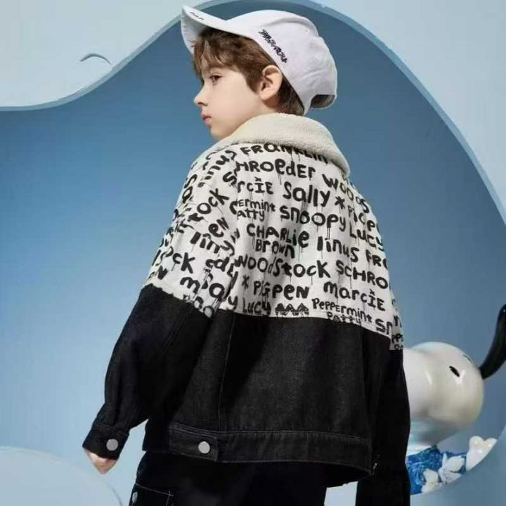 秋冬新款加绒加厚洗水棉中大童童装牛仔外套,独立包装...