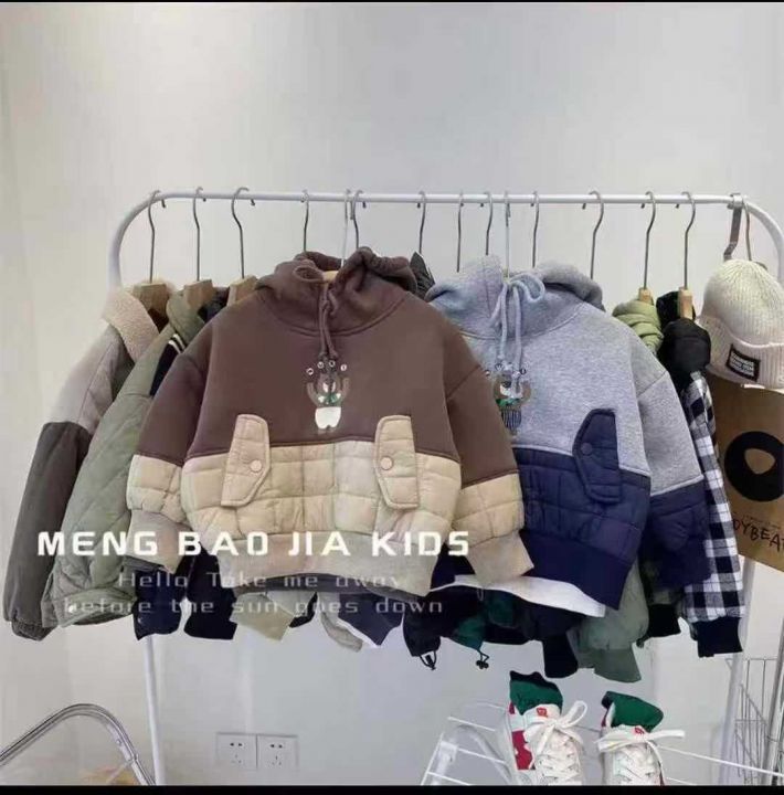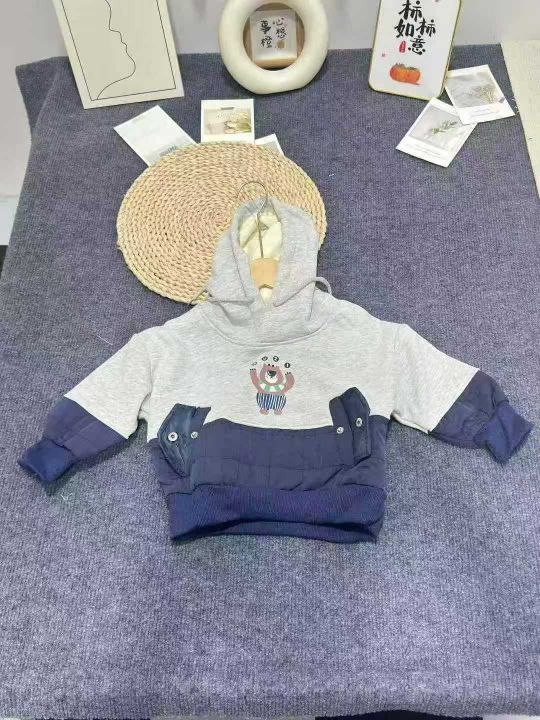 冬季新款 儿童绗棉拼接一体绒连帽卫衣帽衫男童女童韩版上衣潮,数量285件,码数80-110,独立包装,全清8.8元