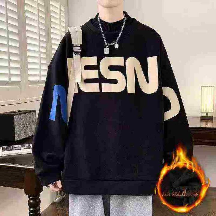 整款两层毛衣领加绒卫衣男加厚款痞帅秋冬装...