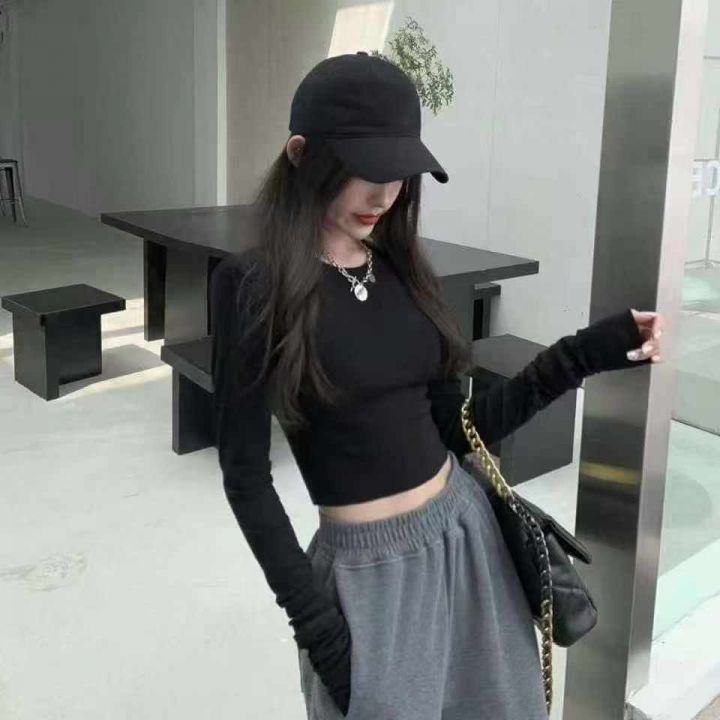 减龄气质休闲长袖打底衫韩版短款露脐T恤女秋装修身显瘦上衣百搭,没独立包装,工厂新货,有部分有吊牌,S-XL,8300件,全清3.8