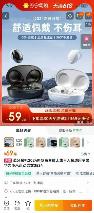 时尚夹耳TWS 蓝牙耳机,大耳垂设计,升级版硅胶材质,...