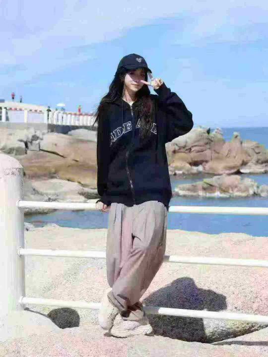 8.9清931 春秋复古潮牌男女卫衣开衫情侣装连帽宽松青...