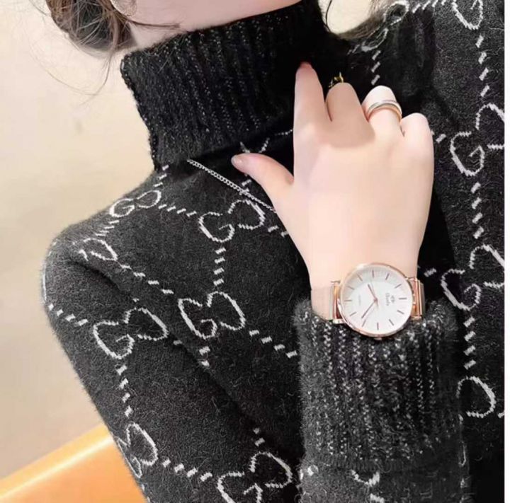 冬季新款高品质高弹力宽松百搭轻奢水貂一体绒高领提花...