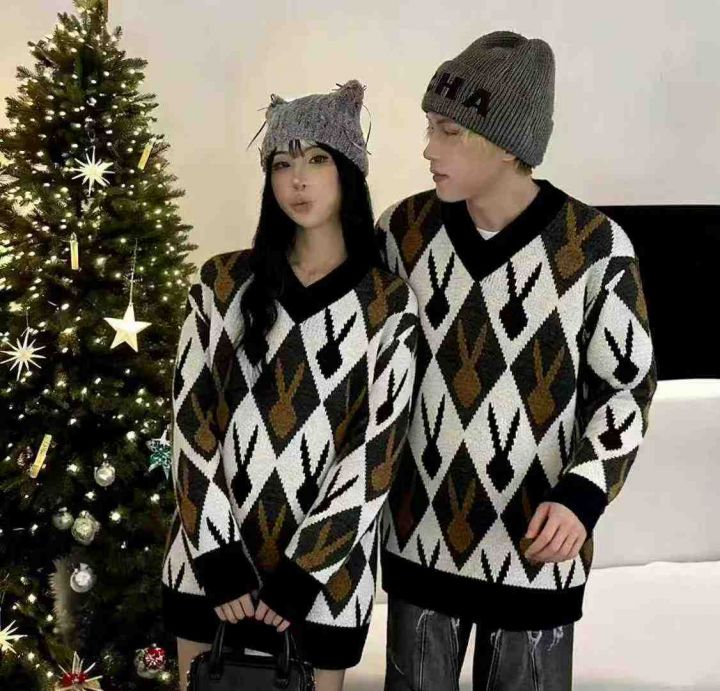 捡漏款,秋冬新款男女同款宽松百搭卡通北极绒V领套头毛衣,独立包装带吊牌,码数M--2XL码,96件,全清8.9元超低价秒杀!