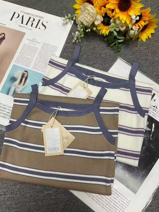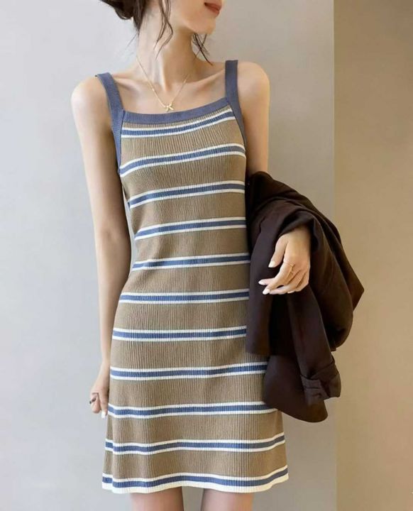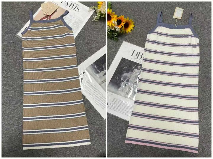 捡漏款,夏季新款品牌原单撞色条纹针织吊带连衣裙,独...