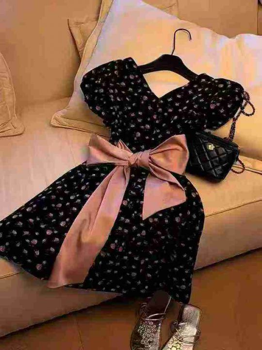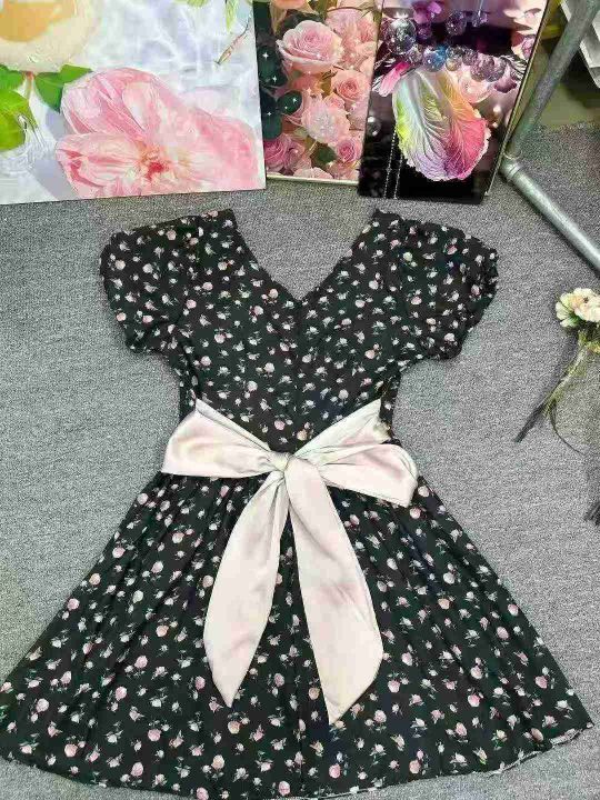 法式复古桔梗碎花连衣裙2025夏季新款蝴蝶结收腰显瘦a字裙,单款单色,2.3.4.5码,独立包装,货品干净,2630件,7.9清,分货加1