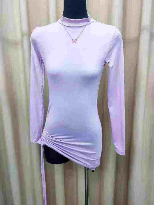 性感紫色长袖连衣裙女春季新款辣妹薄款包臀紧身显瘦圆领打底短裙,数量183件,码数XS-S,全清6.8元