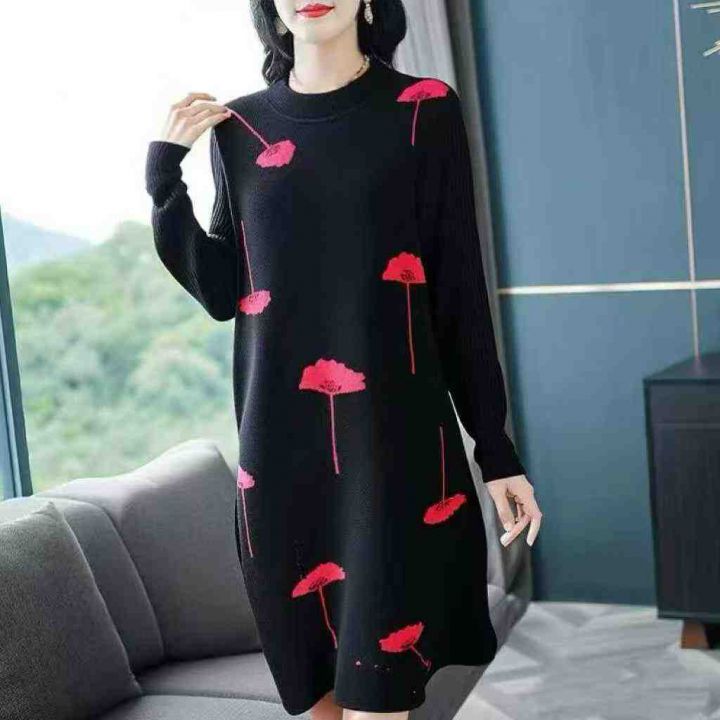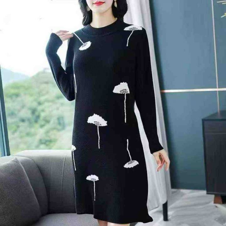秋冬新款宽松百搭轻熟女装提花包芯纱毛衣连衣裙,独立包装带吊牌,均码面料软糯厚实有弹力,宽松版,50件左右,全清8.9元超低价秒杀!