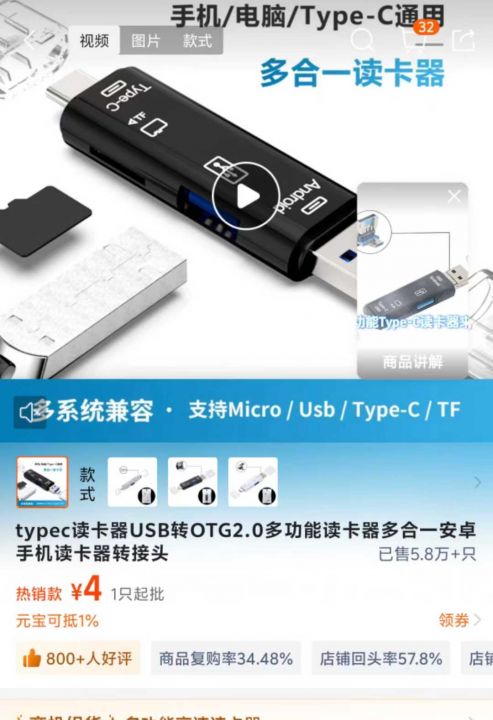 1000个Typec多功能读卡器,全清每个1.6元秒!...