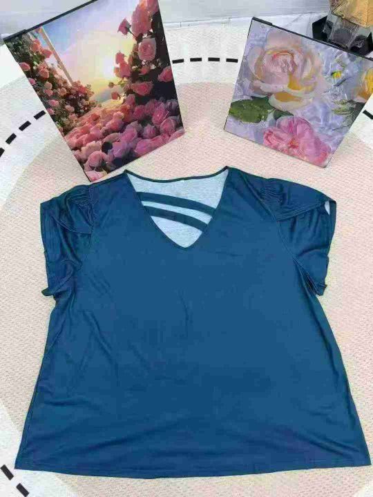 4.5清450件欧美外贸原单女T恤V领花瓣袖上衣!码数:1X...
