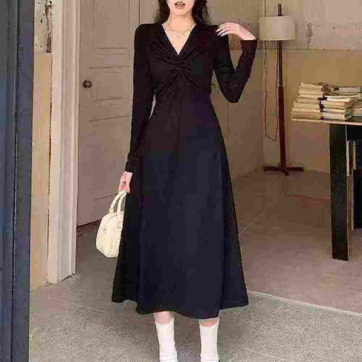 加绒连衣裙71件5.5,女装显瘦v领收腰垂感气质连衣裙,...