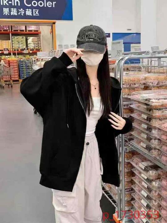 ☕️AB面前后印花加绒拉链卫衣新款连帽拉链开衫卫衣外套高级感宽松百搭上衣潮279件全清9.9元,均码宽松版,单款黑色灰色,独立包装[庆祝][庆祝][庆祝]男女同款开衫卫衣外套 _@_@