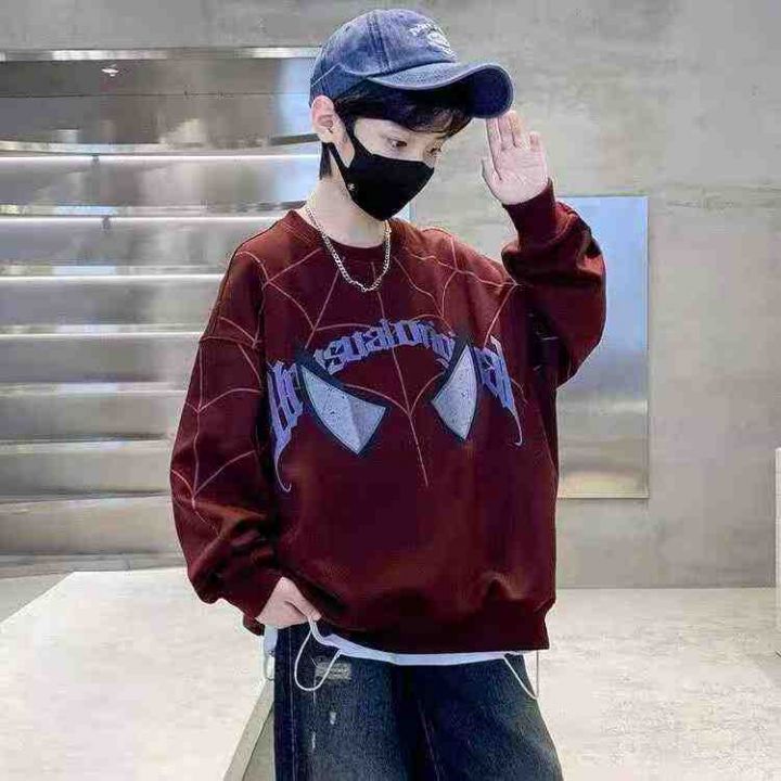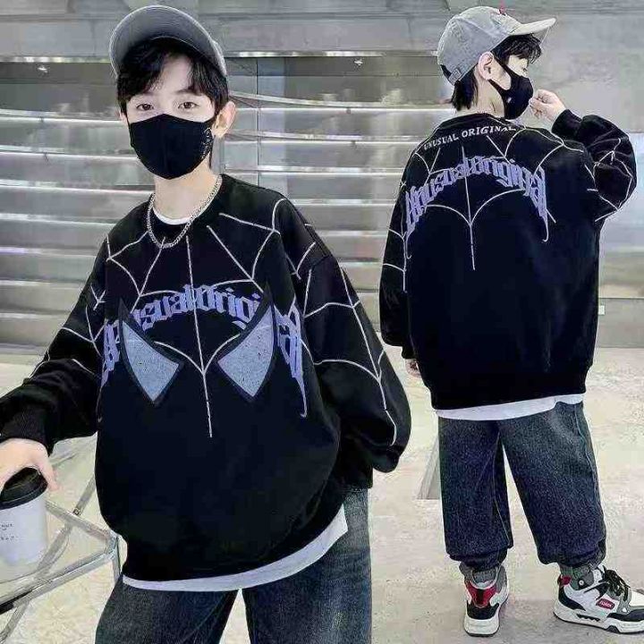 133件\'中大童华棉\'秋季潮酷蜘蛛侠印花圆领卫衣,独...