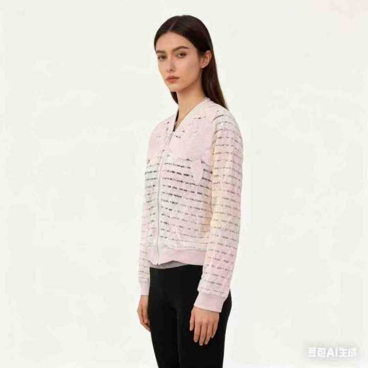 新款薄款开衫蕾丝小外套镂空拉链短款外套女秋款棒球服数量:300件码数:S-M-L...