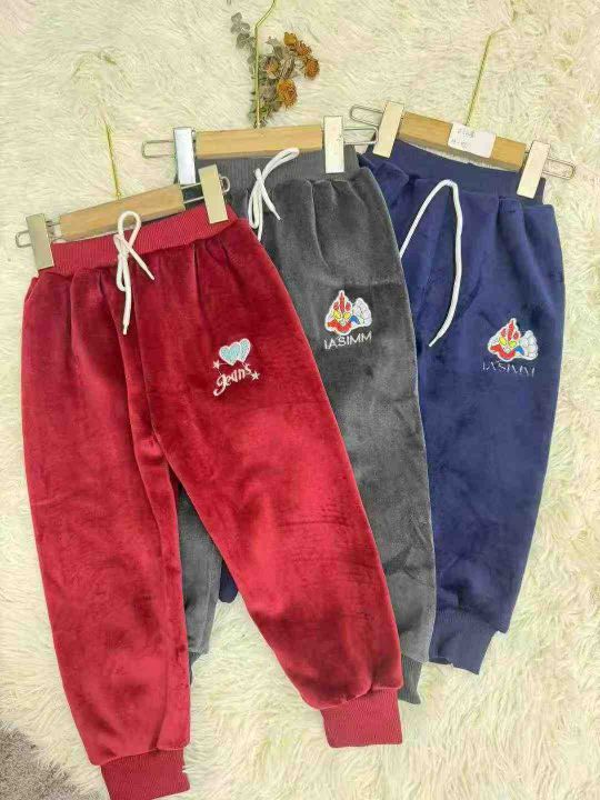 双面阳光绒童装休闲裤,刺绣工艺图案,码数M L XL,数...