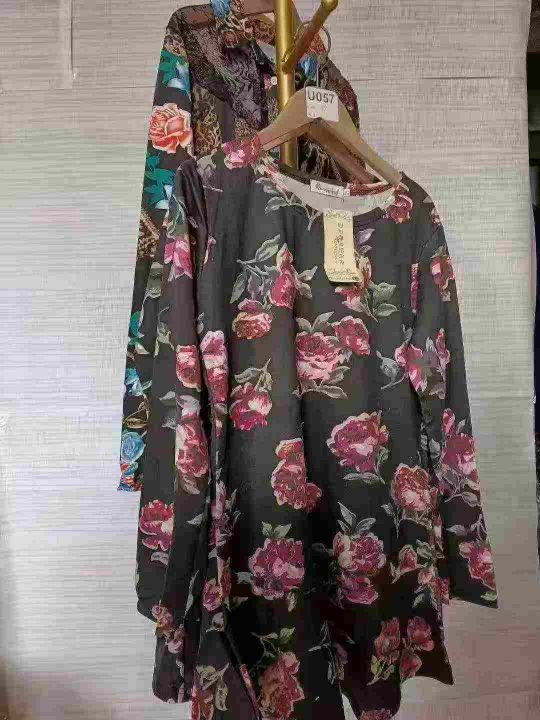 女士秋款长袖衫花款色系列,码数M—3XL,独立包装,数...