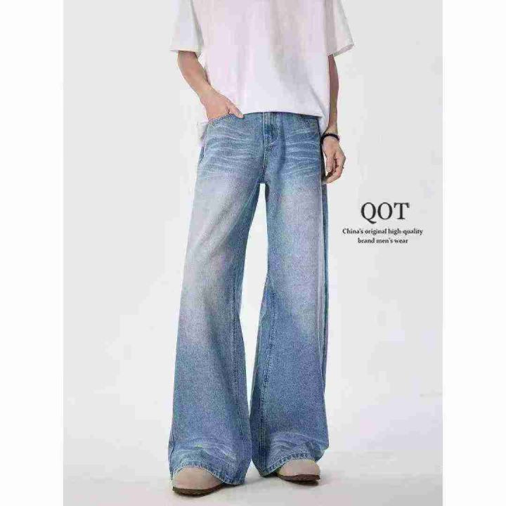 2025水洗冰蓝色磨白猫须直筒微喇牛仔裤男复古百搭宽松裤子情侣,独立包装,码数M-4XL,数量112条,全清11.8元