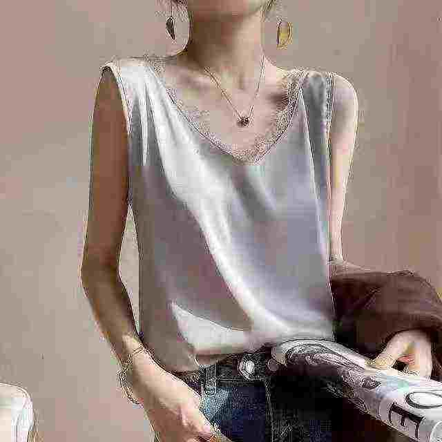 ️全清3.5 气质名媛夏季内搭蕾丝花边修身缎面背心,纯色设计感时尚背心,全部独立包装带吊牌,码数l-2xl,一共126件