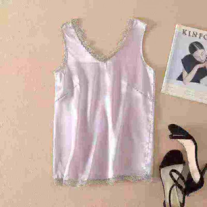 ️全清3.5 气质名媛夏季内搭蕾丝花边修身缎面背心,...