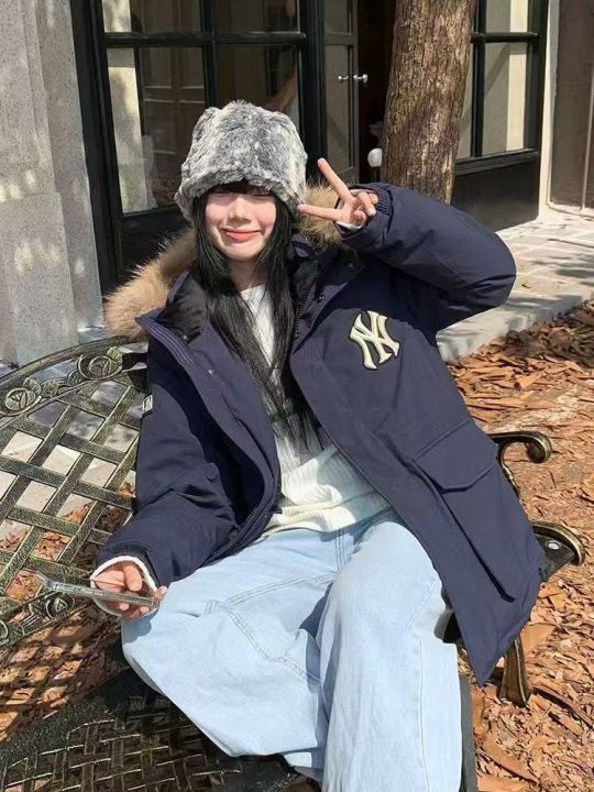 Mlb大毛领200来件可以分货黑色白色藏青色...