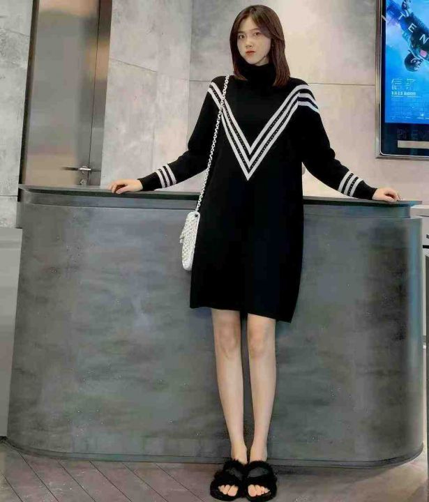 秋冬新款宽松慵懒风加厚中长款包芯纱套头毛衣连衣裙,...