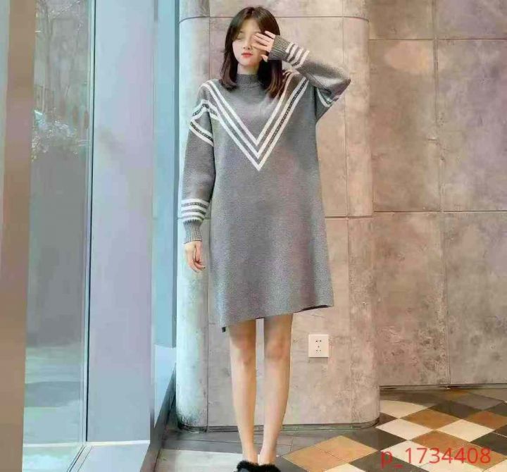 秋冬新款宽松慵懒风加厚中长款包芯纱套头毛衣连衣裙,独立包装,均码面料软糯厚实弹力大,370件,全清9.9元超低价秒杀!分货加一! _@_@