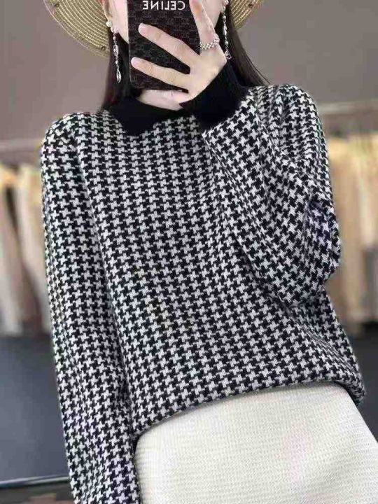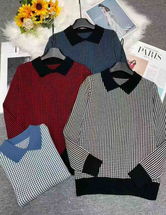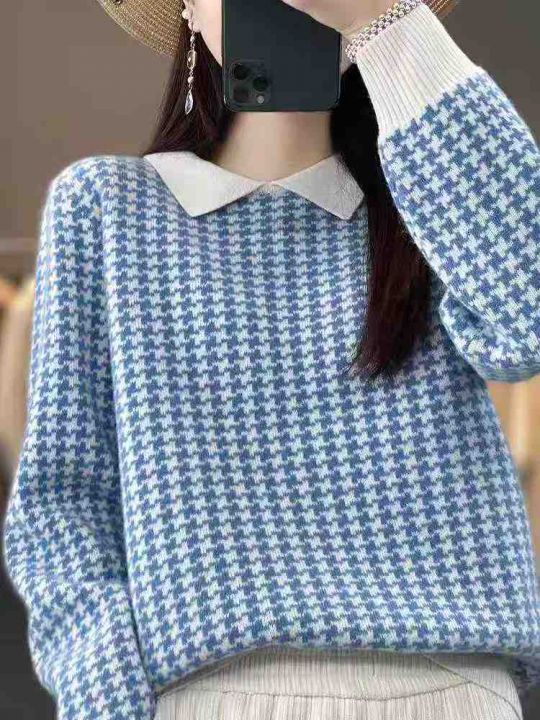 秋冬新款高品质polo领撞色宽松慵懒风安迪绒套头毛衣,...