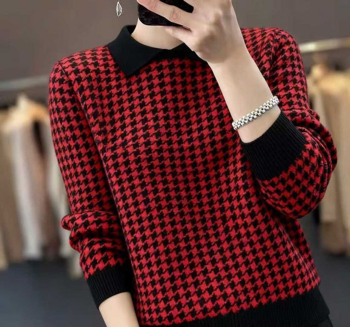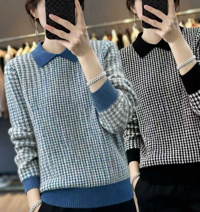 秋冬新款高品质polo领撞色宽松慵懒风安迪绒套头毛衣,...