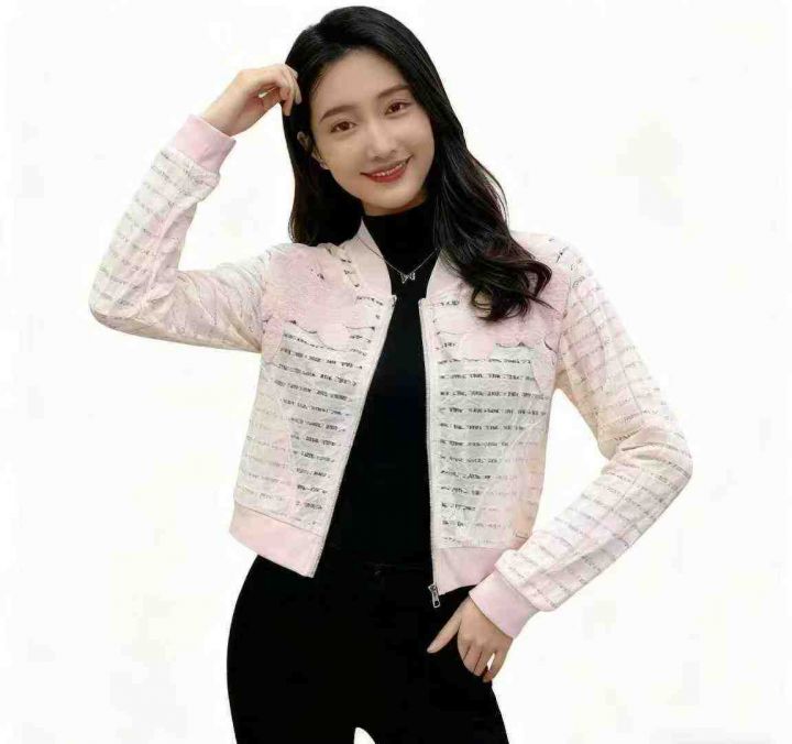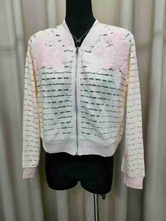 新款薄款开衫蕾丝小外套镂空拉链短款外套女秋款棒球服