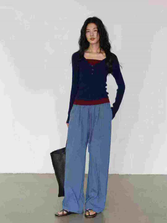 天猫精选300条休闲裤,慵懒风高腰阔腿百搭休闲裤,整款三色,裤头内里包边...