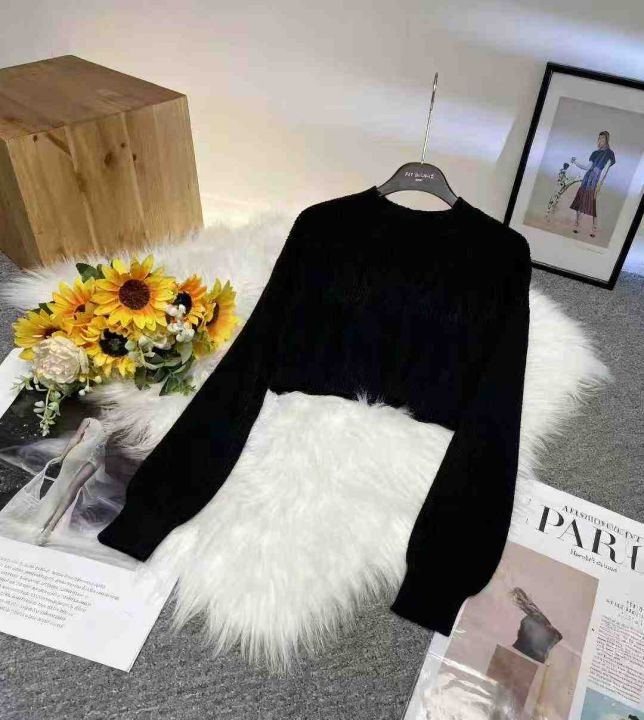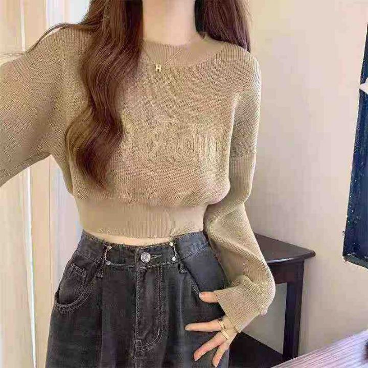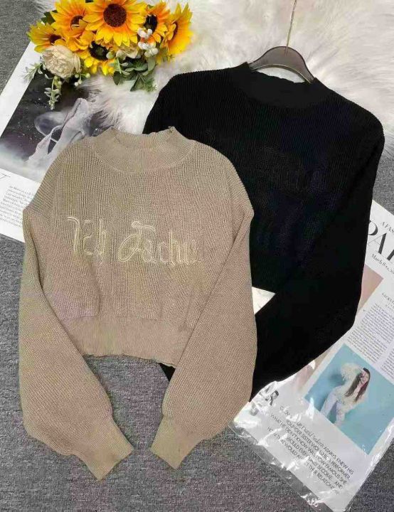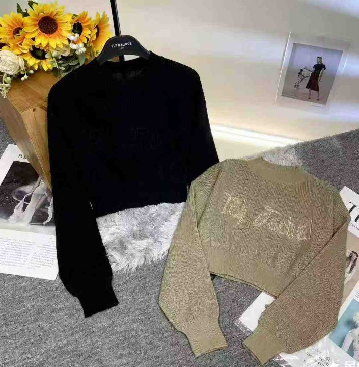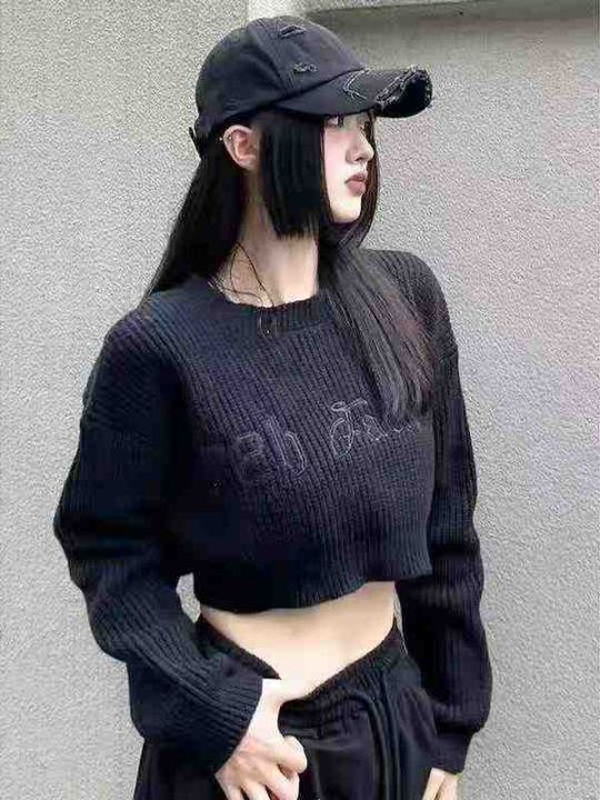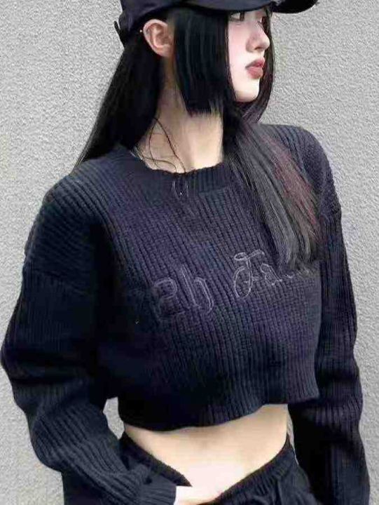 秋冬新款辣妹纯欲风短款刺绣针织套头毛衣,独立包装,...