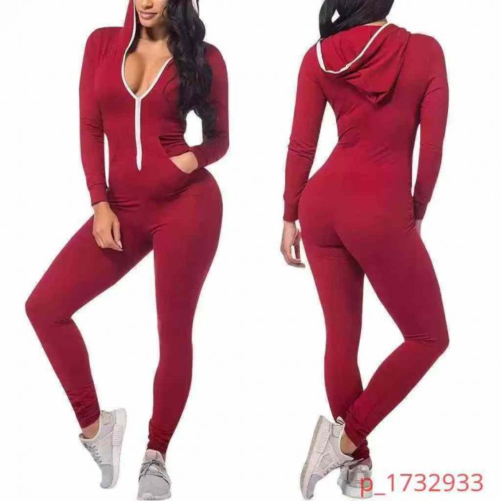 3.8清150件欧美外贸性感连体衣 拉链连帽运动健身连体裤连帽长袖连体衣 码数S-3XL 独立包装 _@_@