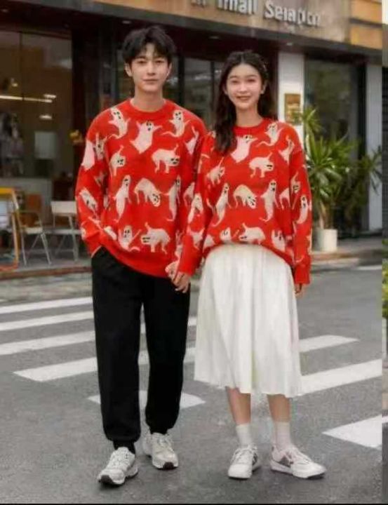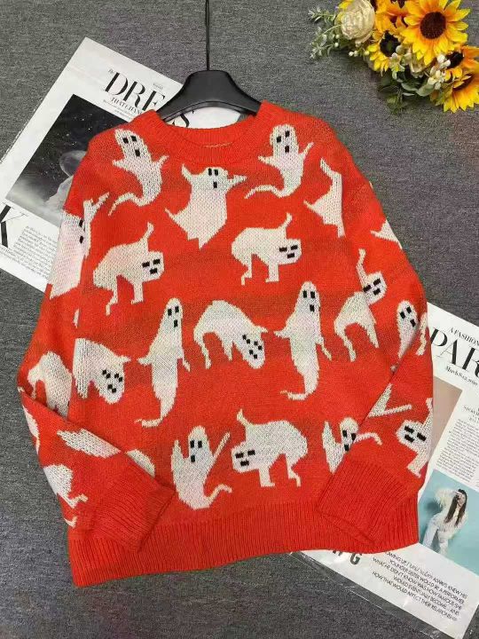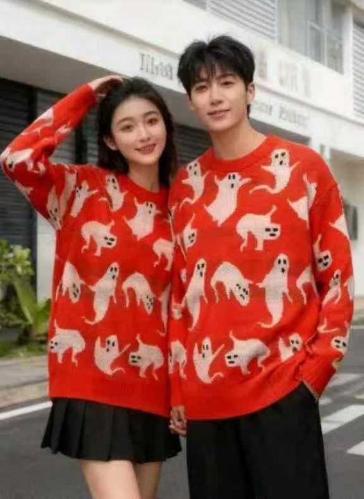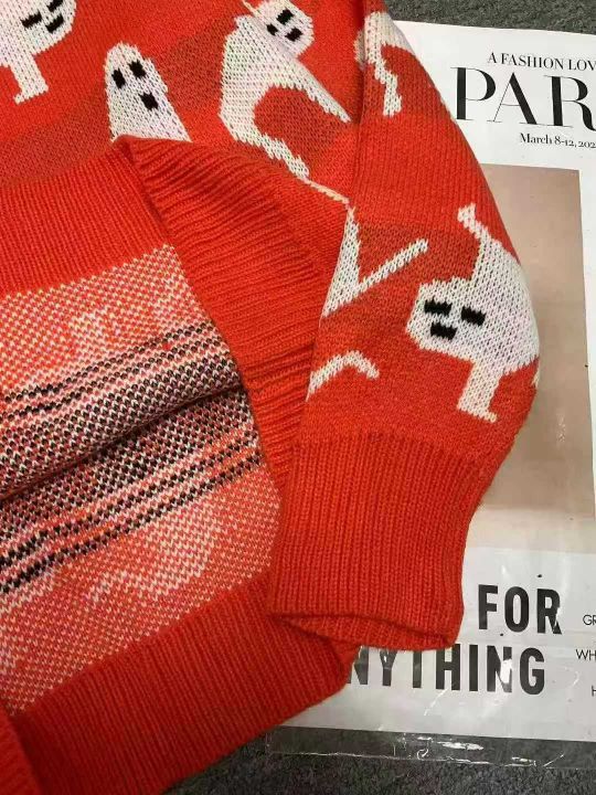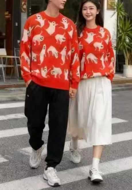 秋冬新款男女同款宽松慵懒风百搭提花圆领套头毛衣,独...