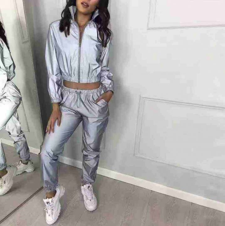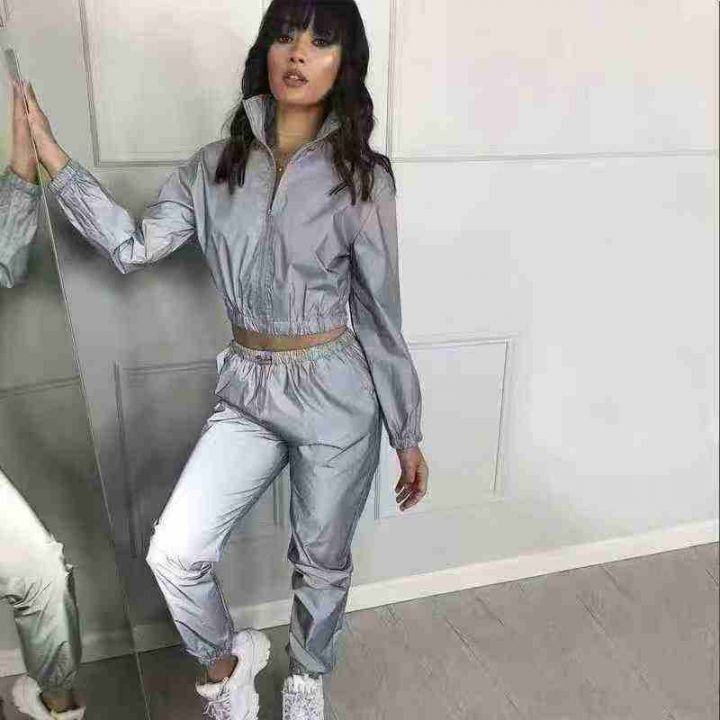 9.9清239套欧美女装套装2025秋季新款两件套亚马逊街头潮人新款反光外套长裤 码数XS- XL 独立包装