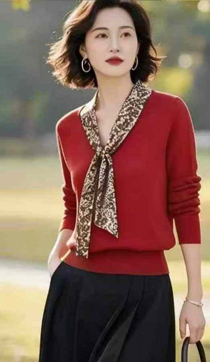 秋冬新款独特超好看碎花飘带V领时尚洋气针织套头毛衣,独立包装,均码年龄...