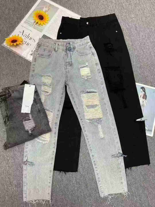 早秋新款洗水棉破洞网红牛仔裤,独立包装带吊牌,码数...