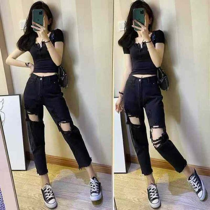 早秋新款洗水棉破洞网红牛仔裤,独立包装带吊牌,码数...