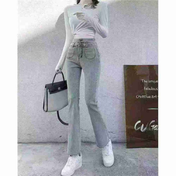 早秋季新品高弹力女装洗水棉毛边微喇叭牛仔裤,独立包装带腰卡,码数S-2XL码,1150件,全清9.9元超低价秒杀!分货加一!