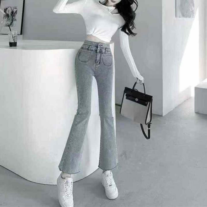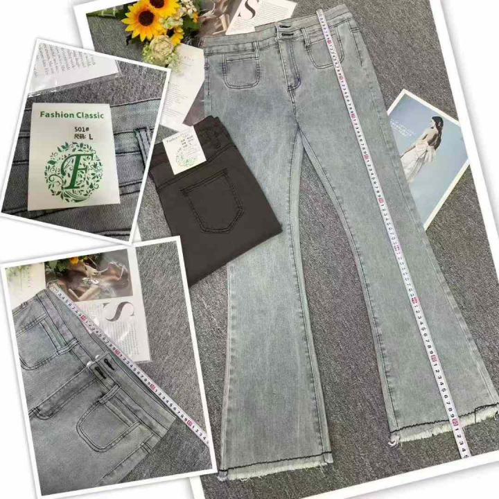早秋季新品高弹力女装洗水棉毛边微喇叭牛仔裤,独立包装带腰卡,码数S-2XL码,1150件,全清9.9元超低价秒杀!分货加一!