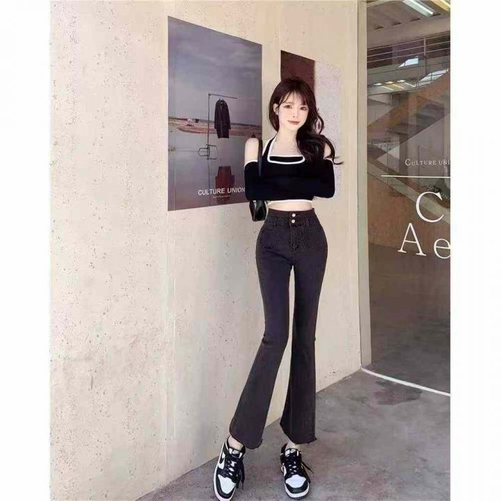 早秋季新品高弹力女装洗水棉毛边微喇叭牛仔裤,独立包...