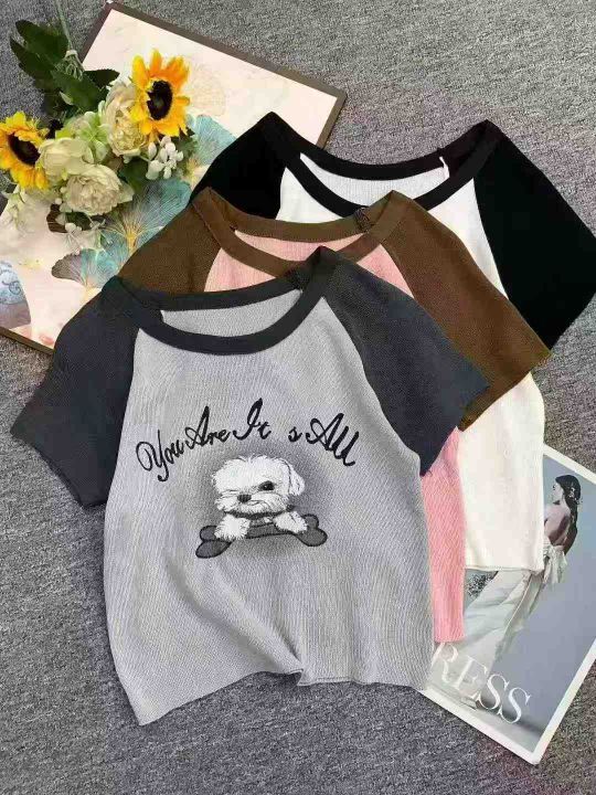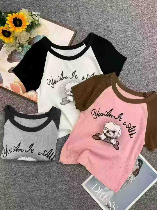 夏季新款美式辣妹复古撞色弹力修身显瘦卡通印花冰丝针织小衫,独立包装,均码面料柔软舒适弹力大,641件,全清6.9元超低价秒杀!分货加一!