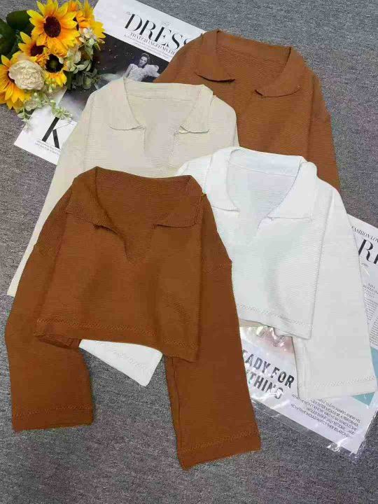 秋季新品法式宽松短款慵懒v领长袖针织衫,独立包装,...