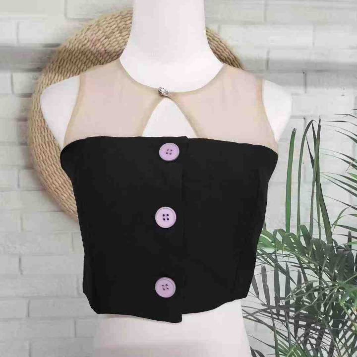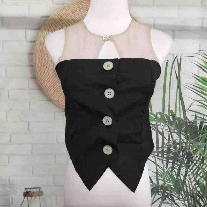 2.8元打包[勾引][勾引] 网纱拼接吊带背心独特别致纯欲甜辣妹性感一字肩上衣,网纱串色,如图无,独立包装,码数S-M,数量128件左右$