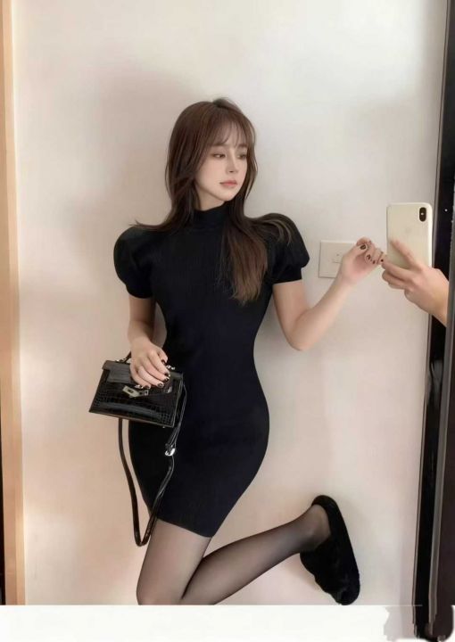 秋季新款法式减龄袖泡泡袖气质内搭外穿套头毛衣连衣裙...