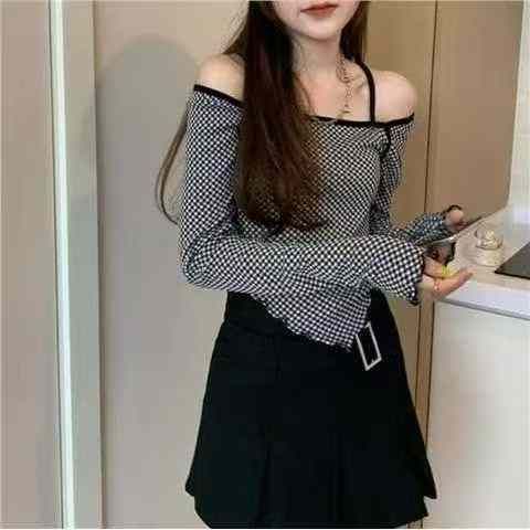 早秋新款甜辣风纯欲性感针织套头毛衣,独立包装,均码...