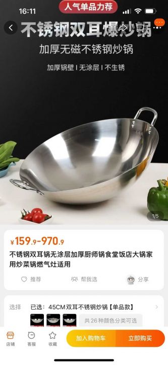 45公分不锈钢双耳炒锅,21元一个,580个左右!...