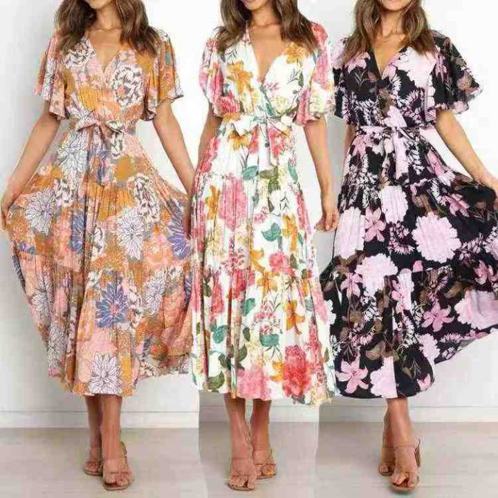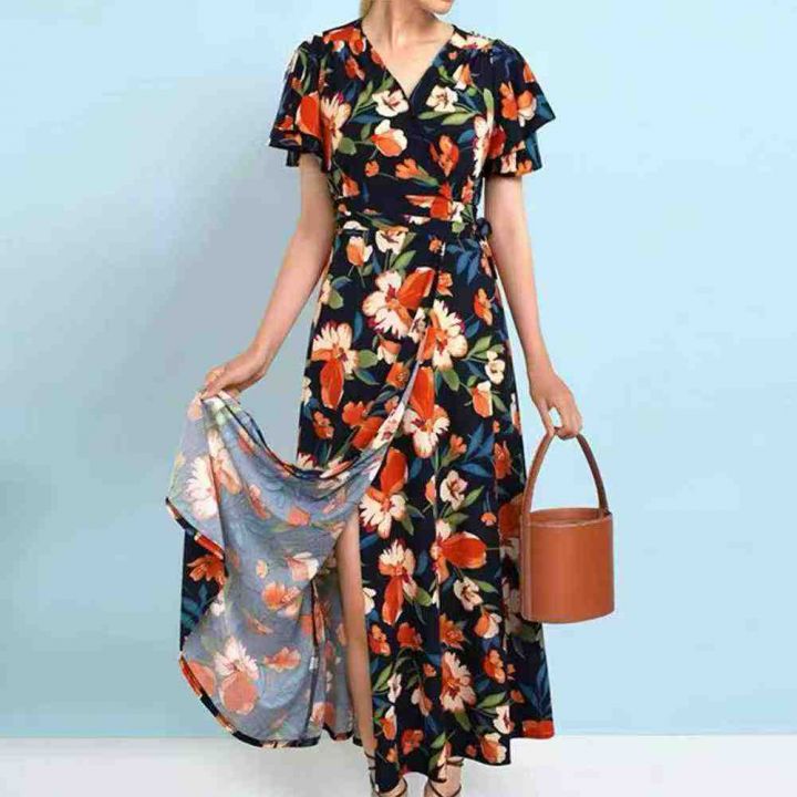 跨境电商下架亚马逊洋气外贸中长款大码连衣裙,独立拉...