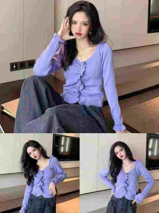 早秋流行穿搭v领毛衣针织长袖小衫上衣,独立包装,均码,750件,清7.5,分➕1